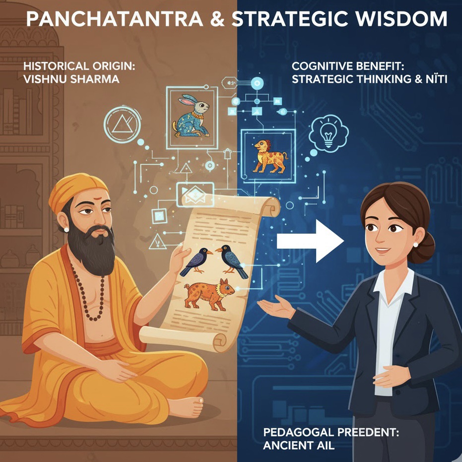 The Panchatantra was not created for passive reading; it was written by Vishnu Sharma as a targeted educational intervention to teach nฤซti (pragmatic, strategic wisdom) to dull-headed princes.
